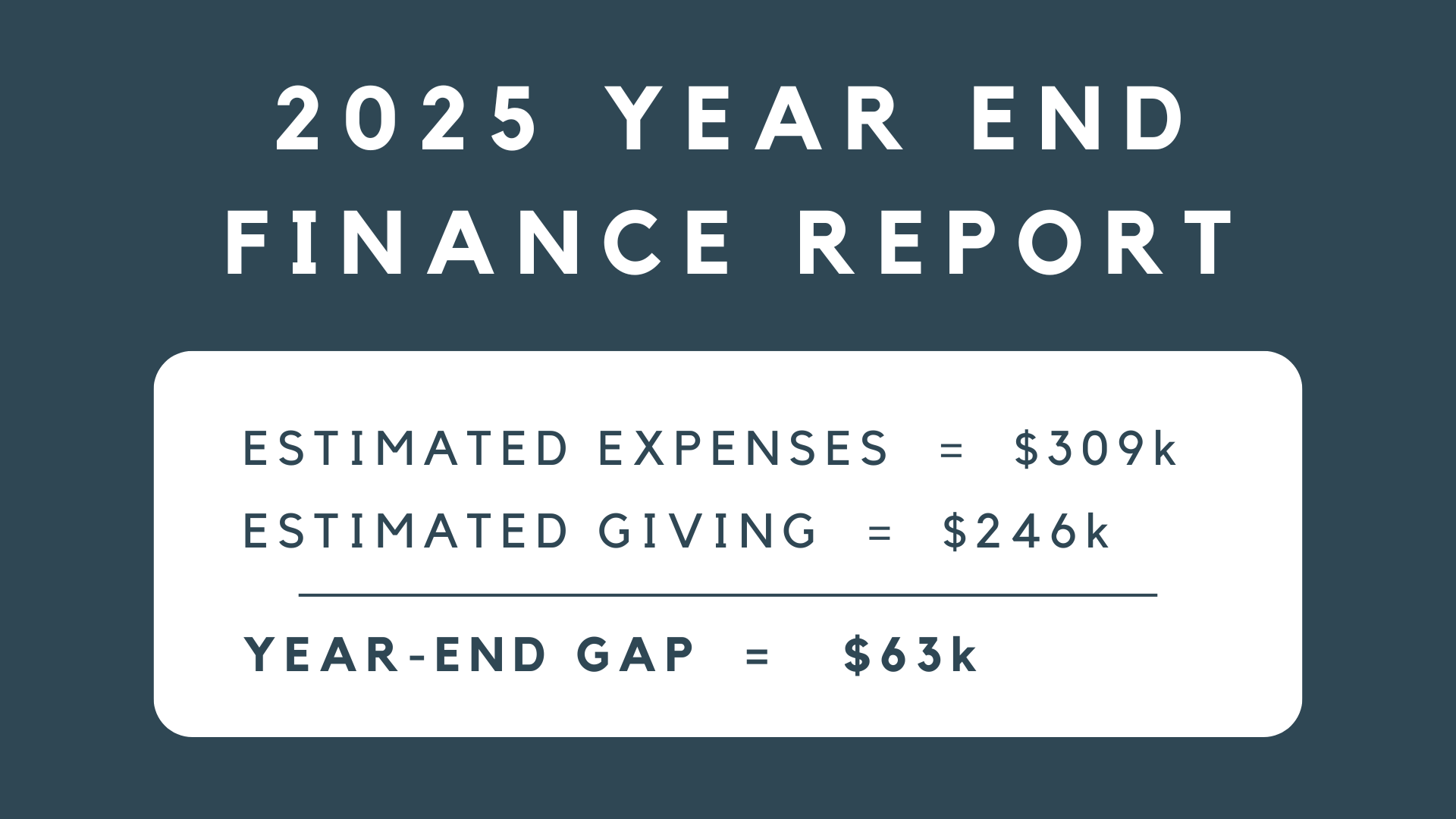 With that in mind, we’re setting a year-end giving goal of $63,000. This will allow us to replenish our savings and ensure we have a strong financial foundation for the ministry ahead in 2026.